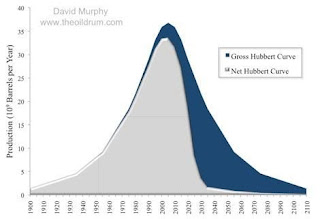 El otro problema es que ya hemos superado el cenit de producción del petróleo estando ahora en la fatídica zona derecha de la curva en la que el crecer se convierte en un problema irresoluble. (Véase la prensa local diaria, la crisis económica y de crecimiento del PIB en los países que mas petróleo consumían hasta ahora).